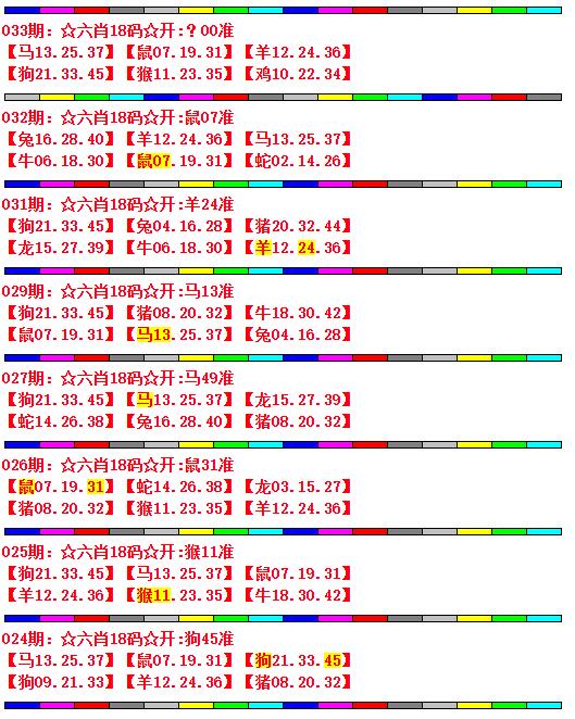 | 033期:[羊24.虎05.鸡10.牛18.猴11.兔04]开(?00) | |